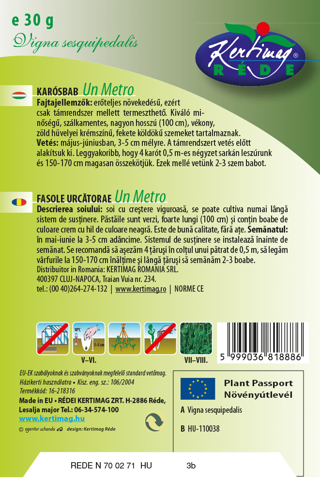 Erőteljes növekedésű, ezért csak támrendszer mellett termeszthető. Kiváló minőségű, szálkamentes, nagyon hosszú (100 cm), vékony, zöld hüvelyei krémszínű, fekete szemeket tartalmaznak.