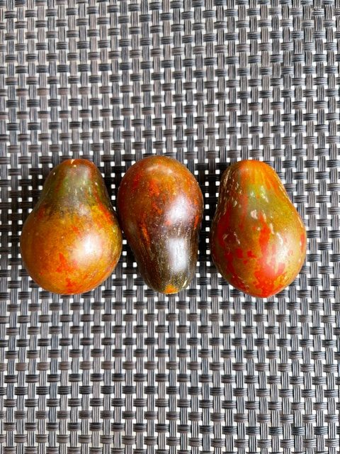 Egyik abszolút kedvencünk! A paradicsom gyönyörű, márványos, arany foltokkal díszített körtéket termelnek. A gyümölcsök egy tarka koktélkörte paradicsom, belül vörös színű hússal, amely körülbelül 1,25 hüvelyk hosszú és 1 uncia súlyú lehet. Ez a paradicsom látványos megjelenéséről és ízéről ismert. Salátákhoz, uzsonnához és paradicsomszószhoz kiváló! Az USA-ból származik, és Dean Slater készítette, aki barátjáról, Michael Keyes tiszteletesről nevezte el.
