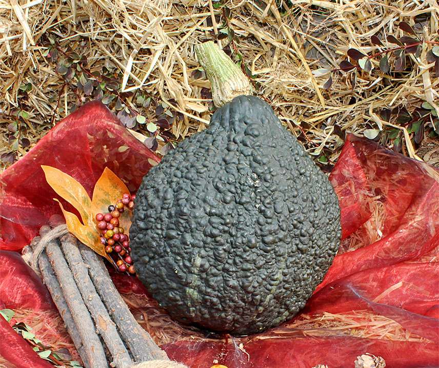 Erősen szemölcsös zöld Hubbard Termései nem túl egyöntetűek, 3-12 kg tömegűek, rendkívül dekoratívak, szinte feketék, szemölcsökkel borított. Természetesen a jól tartott gyümölcsök jól használhatók a konyhában.