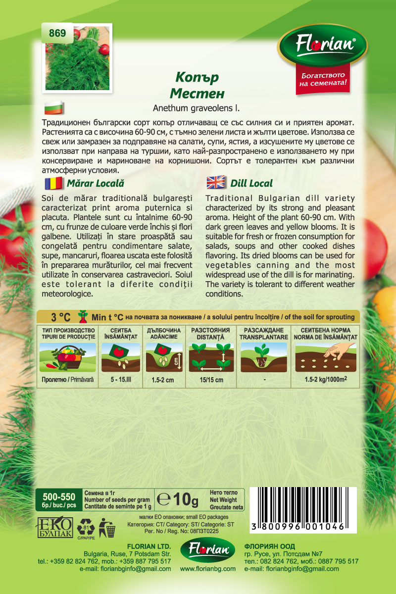 Hagyományos bolgár kapor, erős és kellemes illatú fajta. A növények 60-90 cm magasak, sötétzöld levelekkel, frissen, fagyasztva, szárítva, levesekben, különleges aromát kínáló ételekben fogyaszthatók.