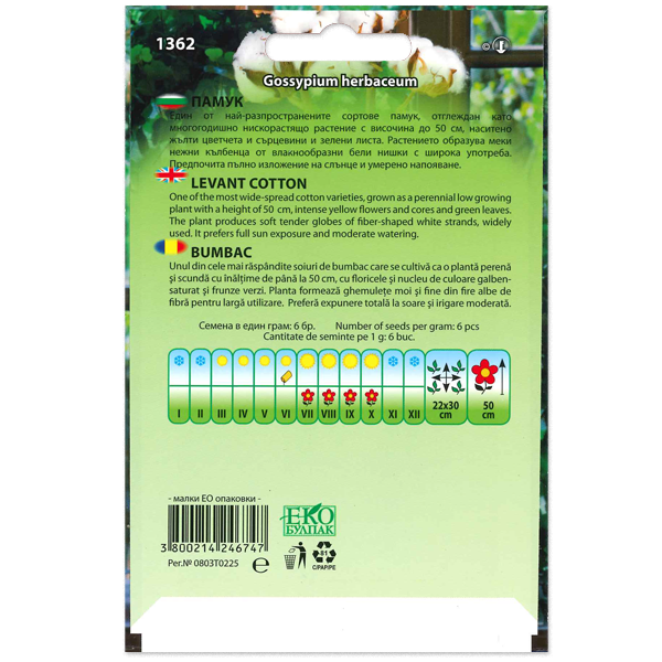 Az egyik legelterjedtebb gyapotfajta, amelyet évelő és rövid, legfeljebb 50 cm magas növényként termesztenek,  a mag telített sárga és zöld levelek. A növény puha és finom gyapotcsomókat képez, a teljes napsugárzást és a mérsékelt öntözést kedveli.