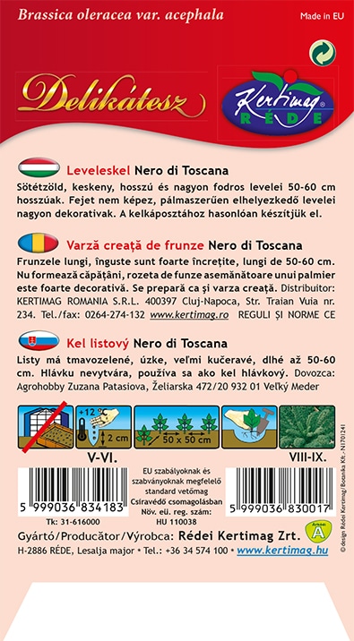 Sötétzöld, keskeny, hosszú és nagyon fodros levelei 50-60 cm hosszúak. Fejet nem képez, pálmaszerűen elhelyezkedő levelei nagyon dekorativak. A kelkáposztához hasonlóan készítjük el.
