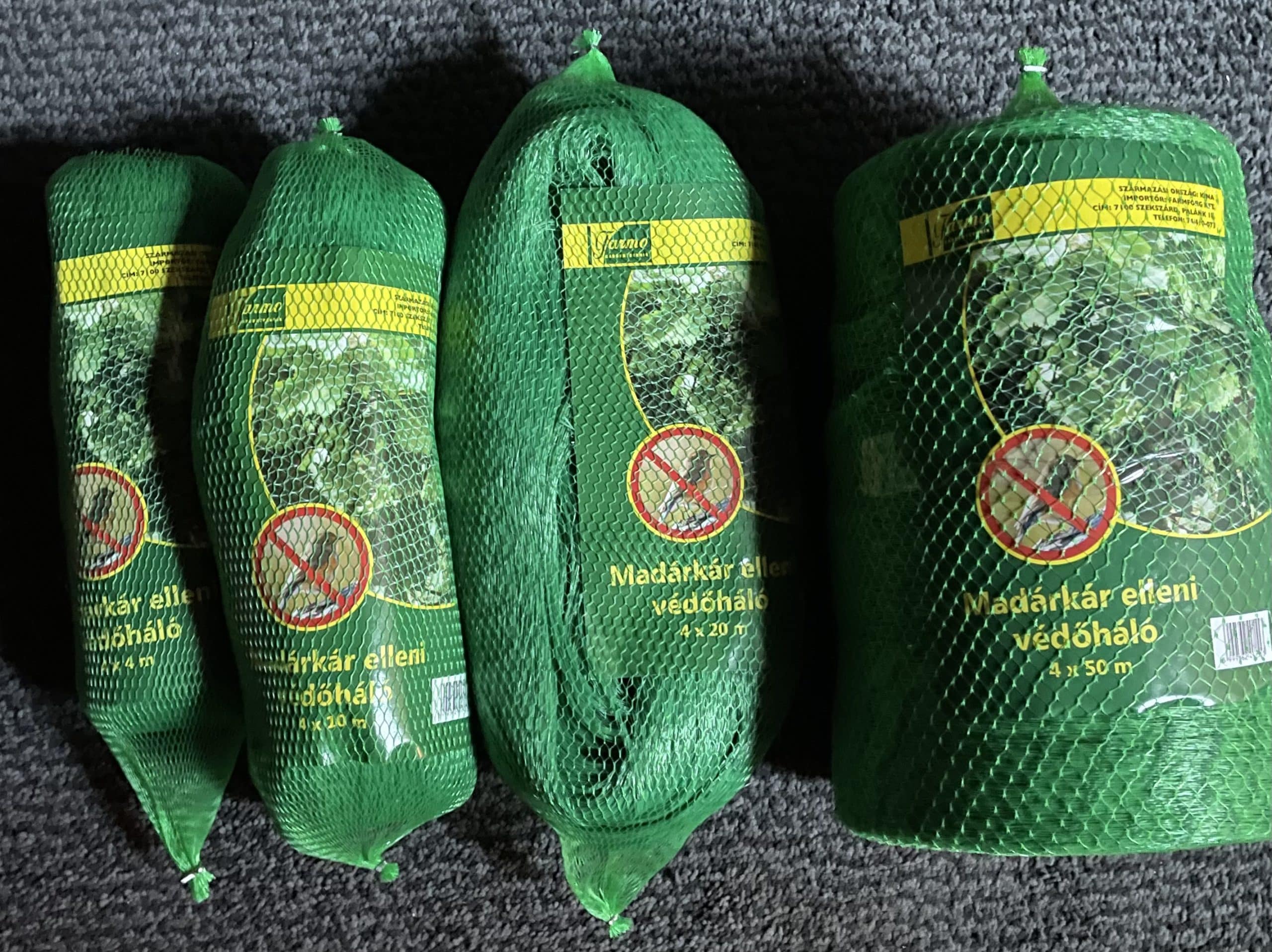 | Madár elleni védőháló | 4×4 m, 10×4 m, 20×4 m, 50×4 m |