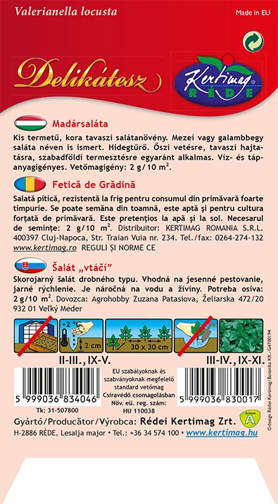 Kis termetű, kora tavaszi salátanövény. Mezei vagy galambbegy saláta néven is ismert. Hidegtűrő. Őszi vetésre, tavaszi hajtatásra, szabadföldi termesztésre egyaránt alkalmas. Víz- és tápanyagigényes.