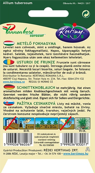 Évelő, 25-30 cm magas. Nyersen fogyasztva nem okoz kellemetlen leheletet.
