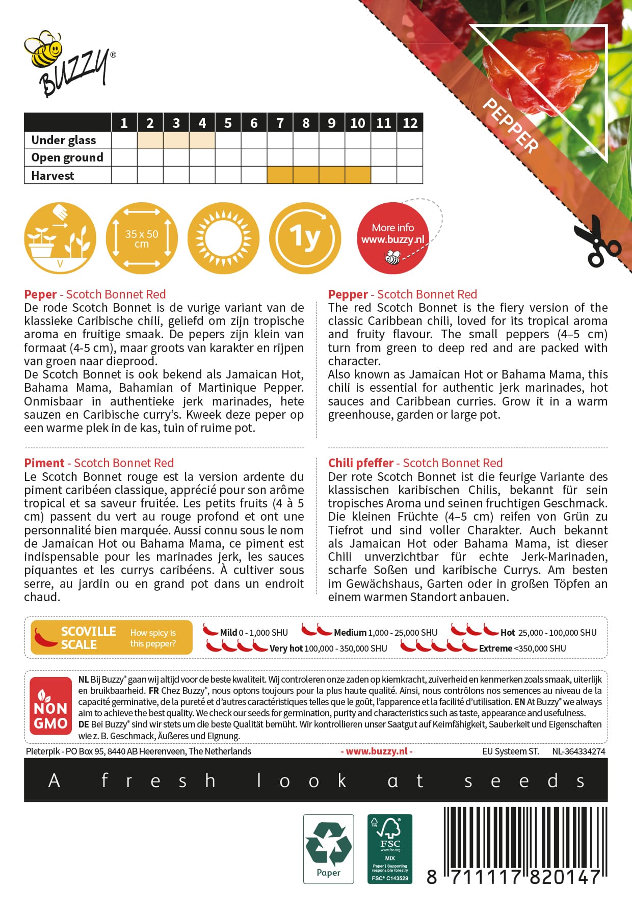 A piros Scotch Bonnet a klasszikus karibi chili tüzes változata, amelyet trópusi aromájáért és gyümölcsös ízéért szeretünk. A kis paprikák (4–5 cm) zöldből mélyvörösre változnak, és karakteresek.