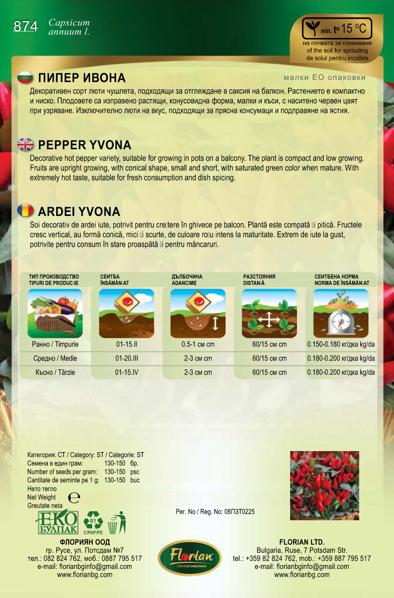 Dekoratív csípős paprika Ivona dekoratív csípős paprika magvak törpe növény cserépbe, Flórián