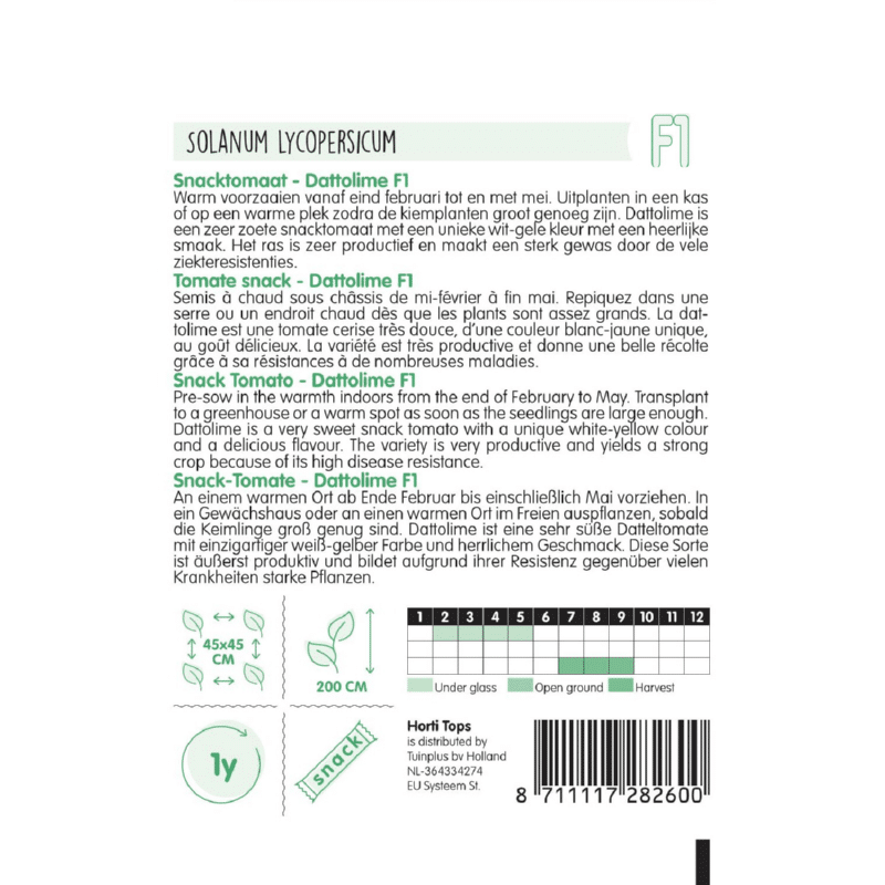 A Dattolime egy nagyon édes snack paradicsom, egyedülálló fehér-sárga színű