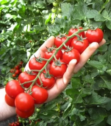 Hybrid paradicsom, cherry típusú nagy hozamú, a termése édes és aromás.