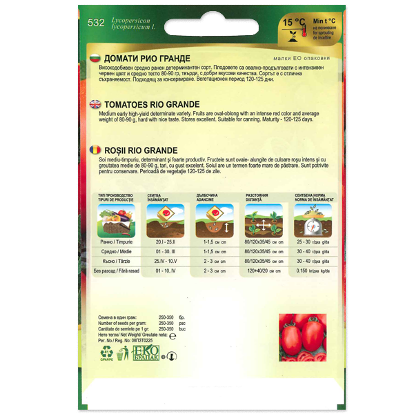 Paradicsommag Rio Grande Határozott növekedésű, félkorai fajta