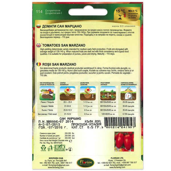 Szántóföldi félkorai termesztésre szánt nagyon termő határozott fajta.A termés alakja megnyúlt, átlagos tömege 130-140 g.Éretten sötétvörös színű, sűrű tartalommal, kiváló ízű Alkalmas pürék, gyümölcslevek készítésére, szárításra Vegetációs időszak 110 nap.