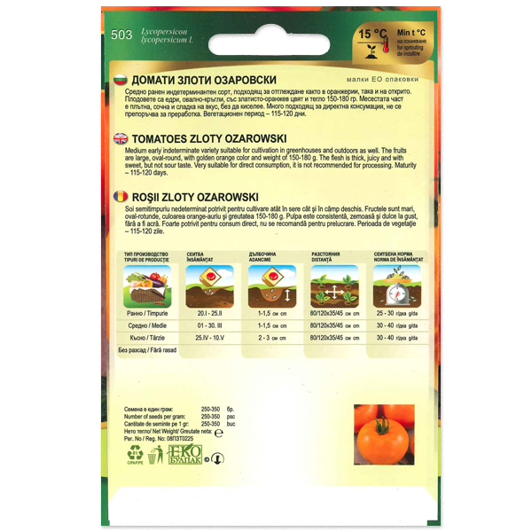 A Zloty Ozarowski paradicsom félkorai fajta, határozatlan növekedésű.