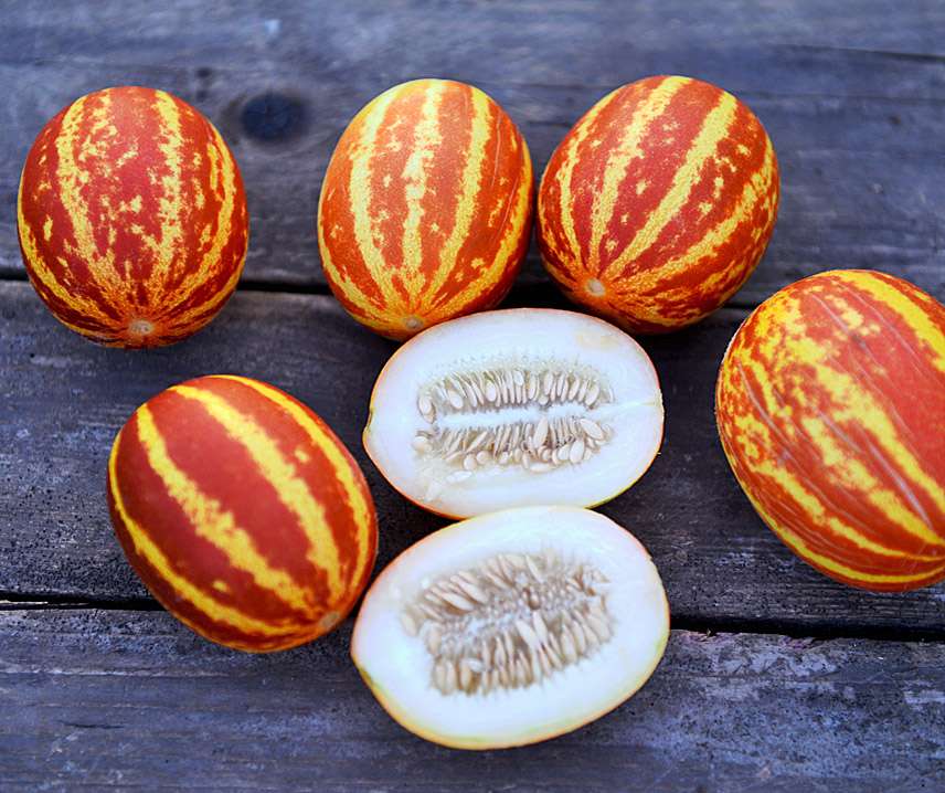 Korán érő, kicsi és bőséges díszdinnye, mely csodálatos illatú. Fogyasztásra is alkalmas, de kifejezetten intenzív aroma nélkül. Kis mérete miatt is inkább dísztárgy, amely illatparadicsommá varázsolja szobáit. Színében hasonló a Plum Granny-hoz, de ovális-hosszú formájú.