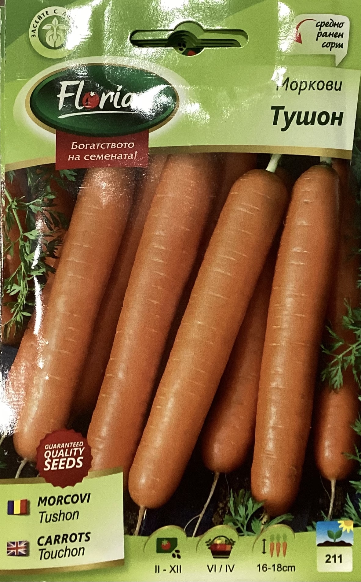 A Touchon sárgarépa félkorai fajta, hengeres gyökerű, 16-18 cm hosszú, kerek hegyű, intenzív narancssárga színű.