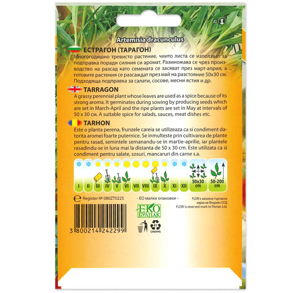 Tárkony Évelő növény, leveleit erős aromája miatt fűszerként használják. Szaporítása palántaneveléssel történik, a magvakat március-áprilisban, a növényeket májusban vetik el. Fűszerként használják salátákhoz, szószokhoz, húsételekhez stb.