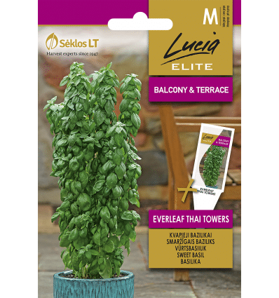 A THAI bazsalikom rendkívül aromás. A növények dekoratívak, oszloposak, 60-90 cm-re nőnek, a lombozat sötétzöld. Alkalmas szabadföldi termesztésre, üvegházban és cserépben. Fűszerkeverékek készítésekor ez a bazsalikomfajta tökéletesen kiegészíti a kakukkfüvet, az ösztragont, a petrezselymet és a rozmaringot. A levelek virágzás előtt a legillatosabbak. Télen a bazsalikom otthon is termeszthető ablakpárkányon lévő dobozokban, azonban szükség van további világításra. A palántákat ajánlott állandó termőhelyre ültetni; szabadföldi termesztés esetén a növényeket a fagyveszély elmúltával kell ültetni. A magokat csíráztató tálcákba kell vetni, majd később a palántákat cserépbe kell szúrni.