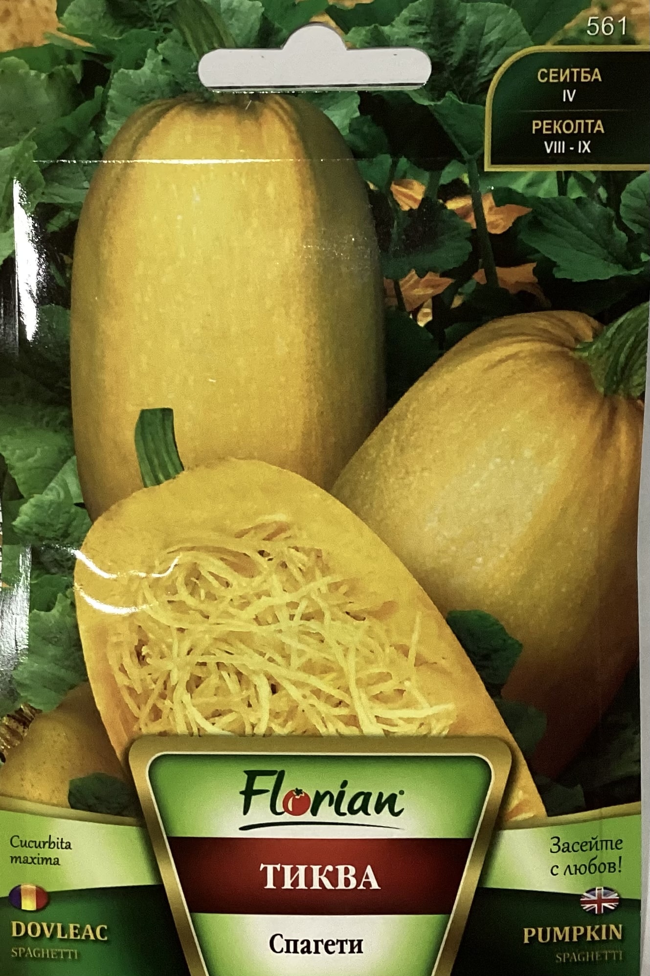A félkorai sütőtök vonzó fajtája, melyre jellemző a spagettihez hasonló rostos pép, innen ered a fajta neve is. Héja kemény, éretten világos narancssárga színű. A termések oválisak, hossza 20-25 cm. A fajta kiváló ízű. Vegetációs időszak 70-80 nap.