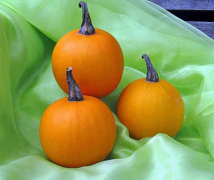 kerek, narancssárga termést hoz.ami szintén nagyon jól festhető. A körülbelül 10 cm nagyságú sütőtököket nagyon bőségesen ültetik.