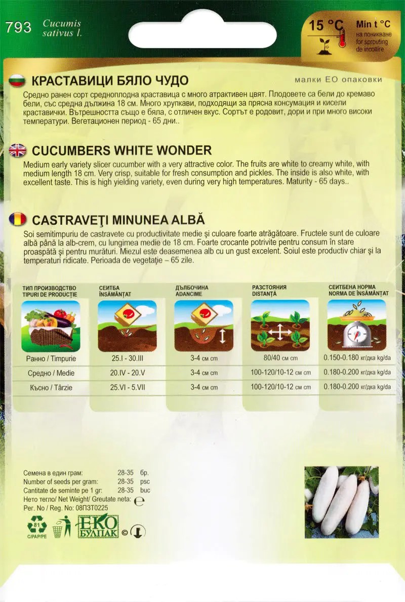 Félkorai uborkafajta közepes termőképességgel és nagyon vonzó színnel. Termése fehértől krémfehérig terjed, átlagosan 18 cm hosszú. Nagyon ropogós, friss fogyasztásra és pácolásra is alkalmas. A mag is fehér, kiváló ízű. A fajta még magas hőmérsékleten is nagyon termő. A vegetációs időszak 65 nap.